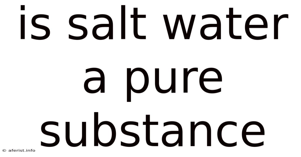 Is saltwater a pure substance? Now, understanding why requires delving into the fundamental concepts of chemistry, specifically the difference between pure substances and mixtures, and the properties of solutions. Day to day, this article will explore the composition of saltwater, explain why it's classified as a mixture, and dig into the scientific principles underpinning this classification. Think about it: the simple answer is no. We'll also address common misconceptions and answer frequently asked questions Not complicated — just consistent..