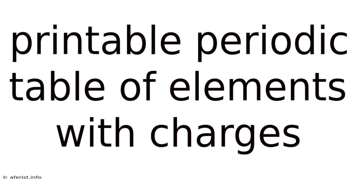 The periodic table of elements is a cornerstone of chemistry, organizing elements based on their atomic number, electron configuration, and recurring chemical properties. Even so, simply knowing the element's symbol and atomic mass isn't enough for understanding chemical reactions. Day to day, understanding the charges of ions – atoms that have gained or lost electrons – is crucial for predicting how elements will interact. In practice, this complete walkthrough explores the intricacies of ionic charges, their depiction on a printable periodic table, and their importance in chemistry. We'll get into how to interpret these charges, their relationship to electron configurations, and provide resources for accessing and utilizing a printable periodic table featuring ionic charges Which is the point..