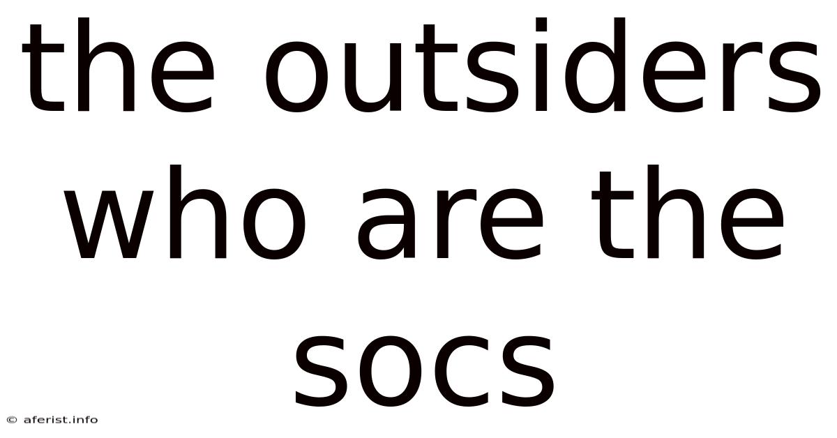 Here's the thing about the Socs, or Socials, are a prominent antagonistic group in S.Hinton's iconic novel, The Outsiders. E. In real terms, this article will delve deep into the world of the Socs, exploring their motivations, their portrayal in the novel, and the complexities that exist beyond the simple "good guys vs. They represent a stark contrast to the Greasers, the novel's protagonists, highlighting the social and economic divides of 1960s Tulsa, Oklahoma. bad guys" narrative. Understanding the Socs is crucial to understanding the novel's central themes of class conflict, social injustice, and the search for identity Most people skip this — try not to..